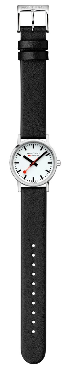 MONDAINE Classic A658.30323.11SBBV sind Damen-Uhren mit einem schwarzen Armband aus veganem Leder mit Dornschließe. Das Edelstahlgehäuse hat einen Durchmesser von 30 Millimetern. Das übersichtliche weiße Zifferblatt wird von einem Mineralglas geschützt und ist von den ikonischen Bahnhofsuhr inspiriert, mit einem roten Sekundenzeiger. Das Uhrwerk wird von einem Quarzwerk Ronda 513 angetrieben. Mit einer Wasserdichtigkeit von 3 ATM sind die Uhren regen- und handwaschbeständig.