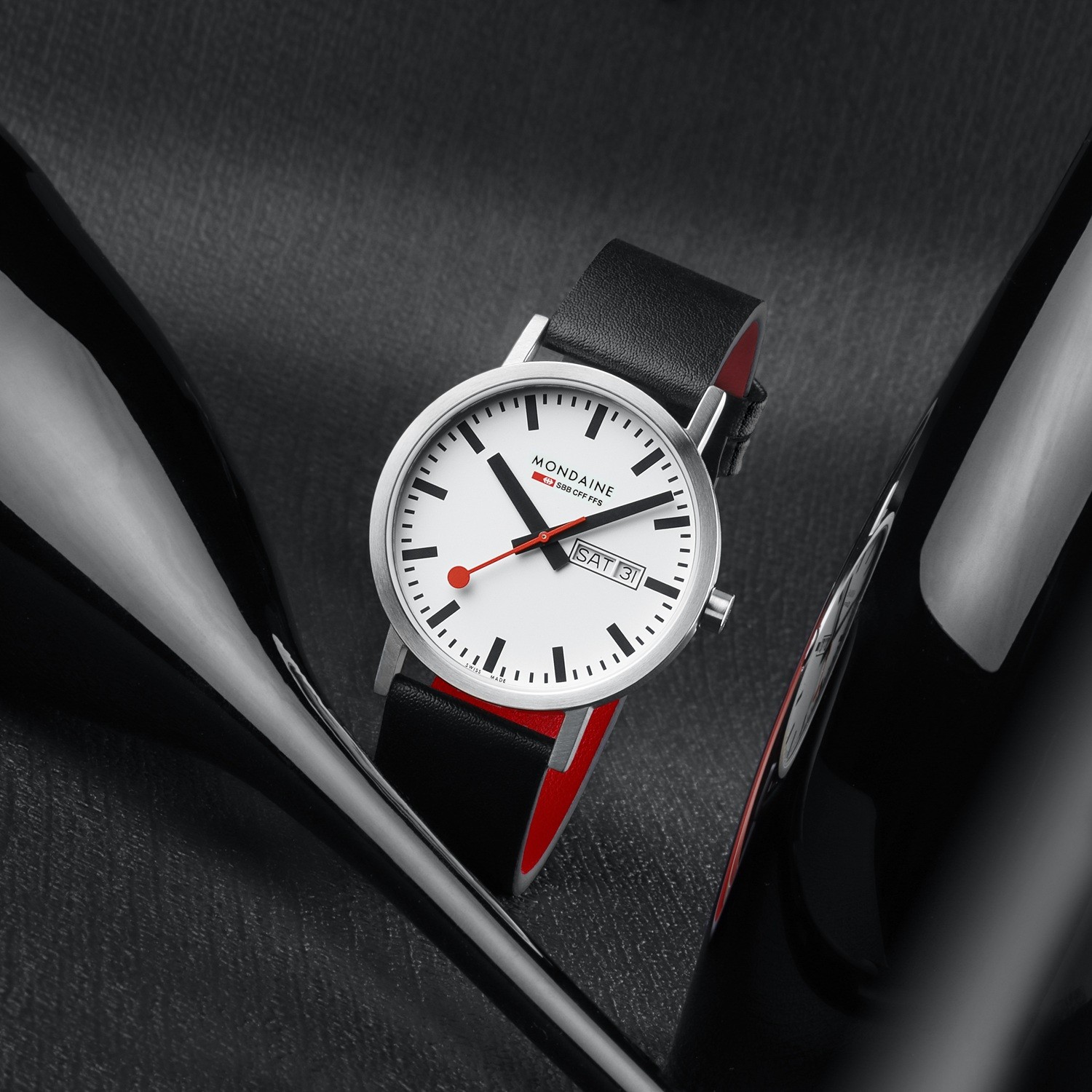 Die Schweizer Marke Mondaine ist bekannt für ihr ikonisches und unverwechselbares Design der Bahnhofsuhr im Bauhaus-Stil, die seit über 70 Jahren Teil jedes Schweizer Bahnhofs ist. Die Geschichte von Mondaine begann im Jahr 1951, als das Unternehmen in der Schweizer Stadt Solothurn gegründet wurde. Der Ursprung der ikonischen Marke reicht jedoch bis ins Jahr 1944 zurück, als der SBB-Mitarbeiter (Schweizerische Bundesbahnen), Elektrotechniker und Konstrukteur Hans Hilfiker die zeitlose Bahnhofsuhr mit einem roten Sekundenzeiger entwarf, inspiriert von der Abfahrtskelle, die zur Abfertigung von Zügen dient. Dieses ikonische Design gelangte 1986 auch ans Handgelenk, als die Marke Mondaine die ersten Armbanduhren vorstellte, die von den offiziellen Bahnhofuhren inspiriert waren.