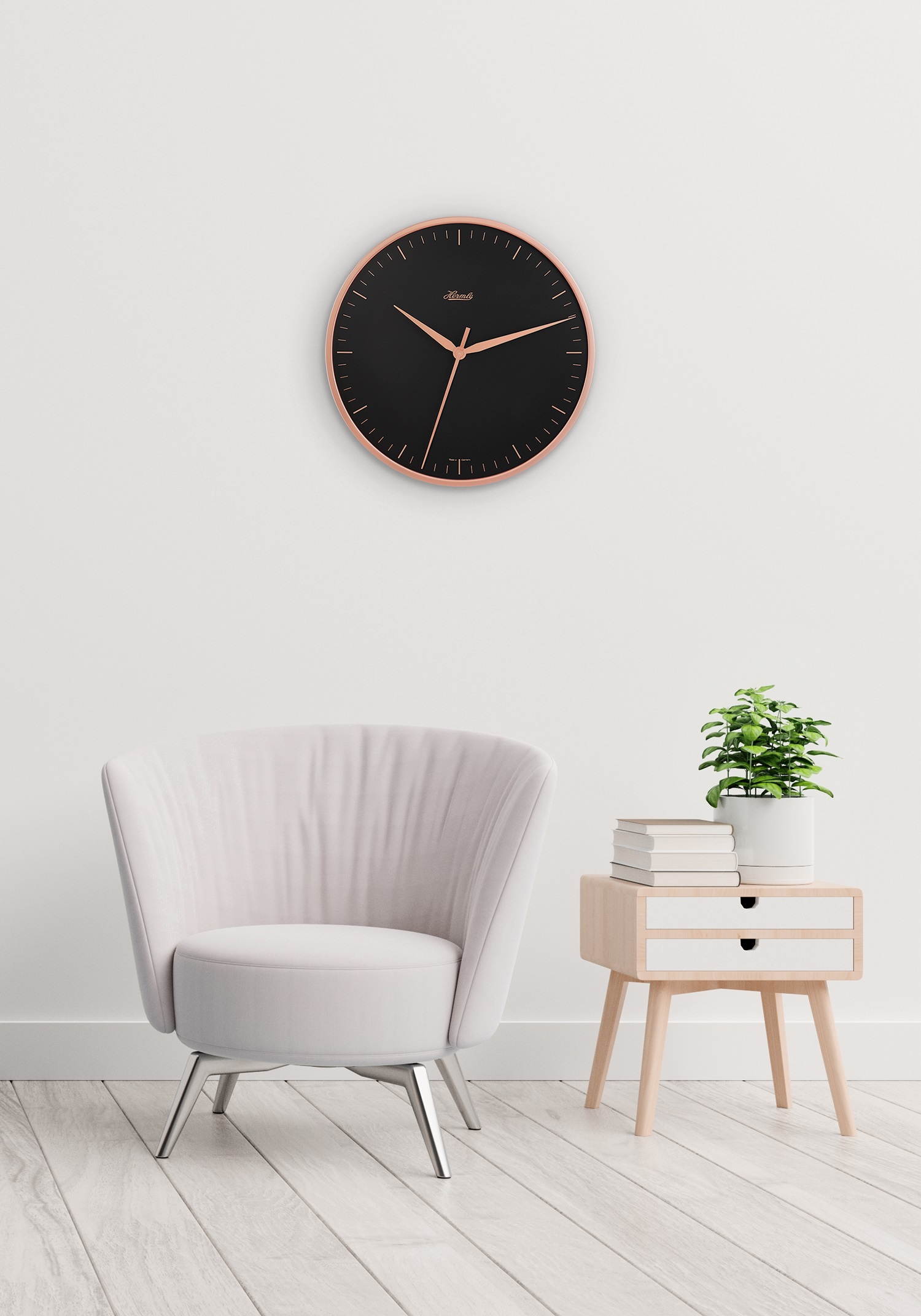 Nástěnné quartzové hodiny v minimalistickém moderním designu.