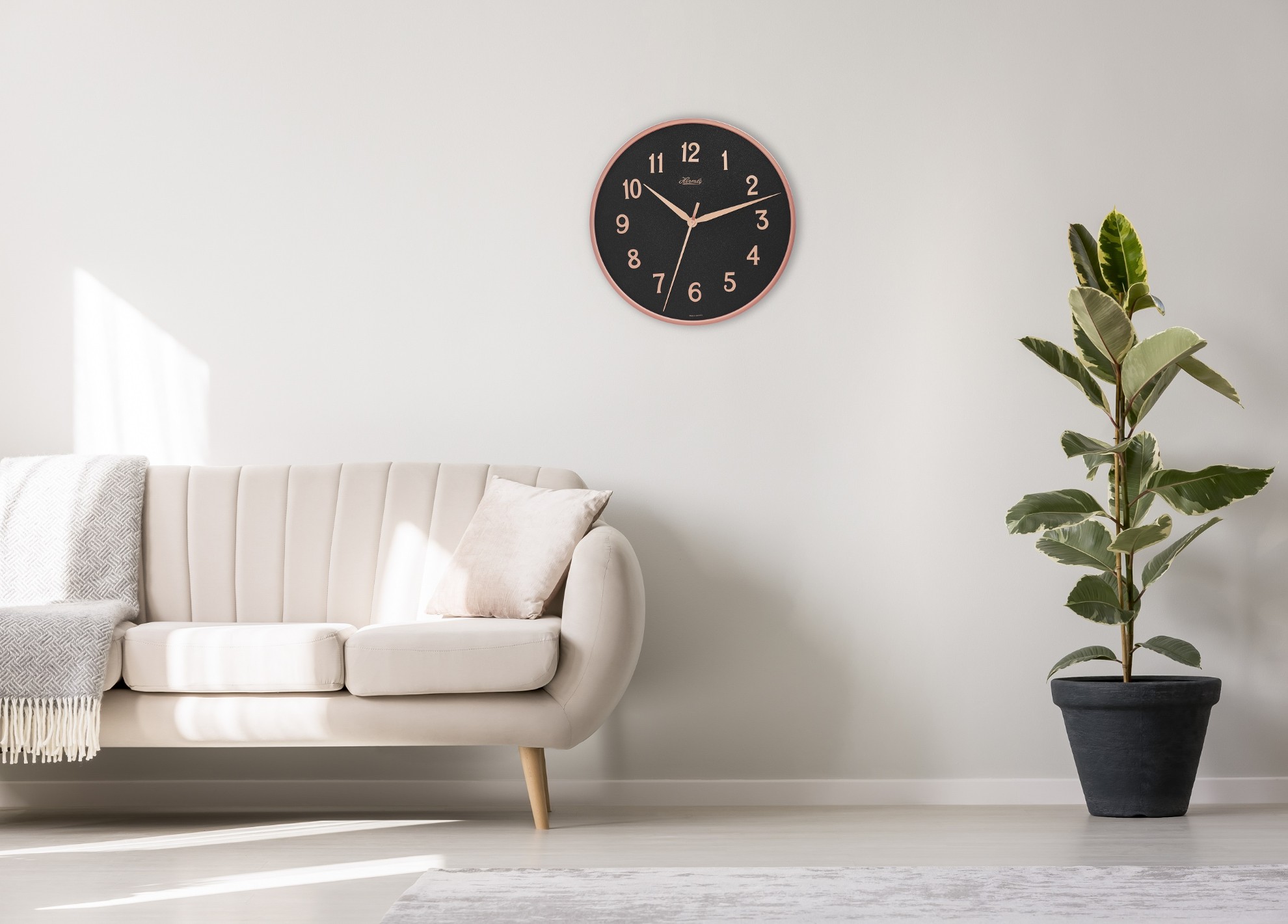 Nástěnné quartzové hodiny v minimalistickém moderním designu.