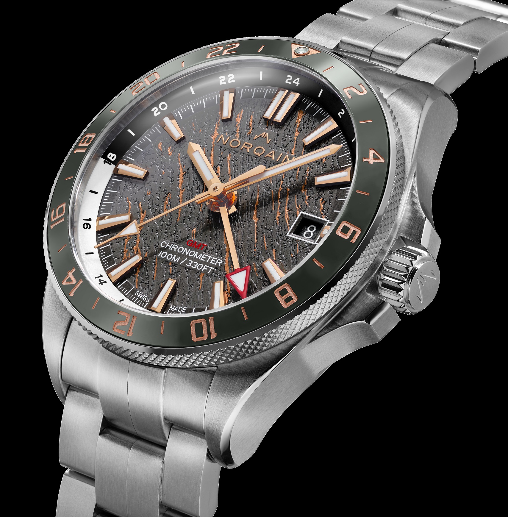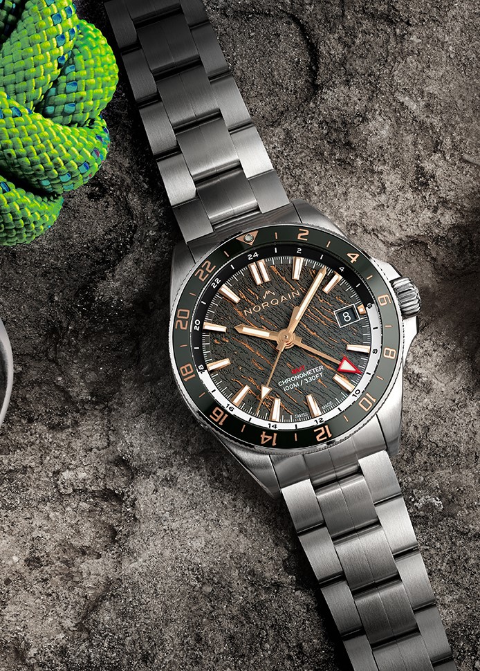 Norqain ist eine junge Schweizer Uhrenmarke mit Sitz in Nidau, einem Teil der traditionellen Uhrenstadt Biel. Unter den Marken mit großer Tradition setzt sich Norqain vor allem durch den Fokus auf erstklassige technische Lösungen seiner Uhren und originelles Design durch, gleichzeitig haben die Uhren einen abenteuerlichen Geist. Das Logo der Marke basiert auf dem Doppel-N in ihrem Namen und stellt gleichzeitig einen stilisierten Berggipfel dar. Die Norqain Uhren zeichnen sich nicht nur durch ein hervorragendes Verarbeitungsniveau aus, sondern auch durch oft unkonventionelle Materialverwendung, und der Kunde erhält bei seiner Marke für den Preis einen überdurchschnittlichen Wert.