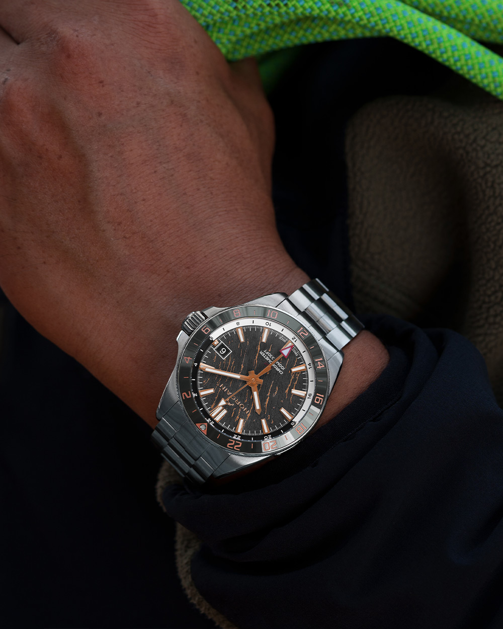 Der NN20/2 ist ein Schweizer mechanisches Manufakturwerk mit automatischem Aufzug und einer Gangreserve von 70 Stunden. Dieses Werk mit Datumsanzeige und GMT-Funktion, das das Überspringen von Stunden und das Vor- und Zurückstellen des Datums ermöglicht, arbeitet mit einer Frequenz von 28800 Halbschwingungen pro Stunde (4 Hz) und hat 28 Steine. Die Brücke trägt die Aufschrift der 3 Grundwerte von Norqain, nach denen die Kollektionen benannt sind und die übersetzt Abenteuer – Freiheit – Unabhängigkeit bedeuten. Der Kaliber NN20/2 verfügt über eine C.O.S.C.-Zertifizierung mit Garantie für hohe Präzision. Uhren, die von diesem Kaliber angetrieben werden, sind ideal für Entdecker, deren Sinn für Abenteuer keine Grenzen oder Zeitzonen kennt.