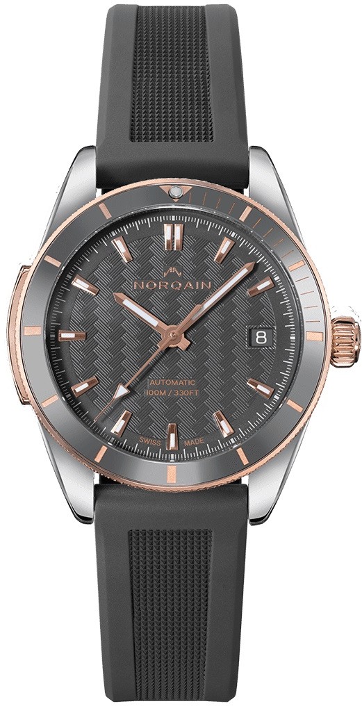 Norqain ist eine junge Schweizer Uhrenmarke mit Sitz in Nidau, einem Teil der traditionellen Uhrenstadt Biel. Unter den Marken mit großer Tradition setzt sich Norqain vor allem durch den Fokus auf erstklassige technische Lösungen seiner Uhren und originelles Design durch, gleichzeitig haben die Uhren einen abenteuerlichen Geist. Das Logo der Marke basiert auf dem Doppel-N in ihrem Namen und stellt gleichzeitig einen stilisierten Berggipfel dar. Die Norqain Uhren zeichnen sich nicht nur durch ein hervorragendes Verarbeitungsniveau aus, sondern auch durch oft unkonventionelle Materialverwendung, und der Kunde erhält bei seiner Marke für den Preis einen überdurchschnittlichen Wert.