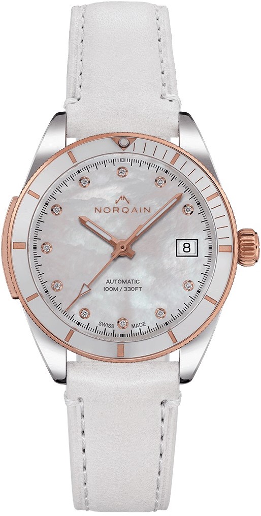 Norqain ist eine junge Schweizer Uhrenmarke mit Sitz in Nidau, einem Teil der traditionellen Uhrenstadt Biel. Unter den Marken mit großer Tradition setzt sich Norqain vor allem durch den Fokus auf erstklassige technische Lösungen seiner Uhren und originelles Design durch, gleichzeitig haben die Uhren einen abenteuerlichen Geist. Das Logo der Marke basiert auf dem Doppel-N in ihrem Namen und stellt gleichzeitig einen stilisierten Berggipfel dar. Die Norqain Uhren zeichnen sich nicht nur durch ein hervorragendes Verarbeitungsniveau aus, sondern auch durch oft unkonventionelle Materialverwendung, und der Kunde erhält bei seiner Marke für den Preis einen überdurchschnittlichen Wert.
