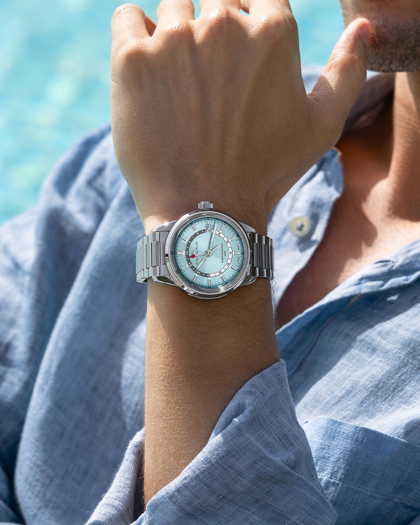 Im 40 mm Gehäuse bietet Norqain in dieser Kollektion Modelle mit der Bezeichnung Freedom 60 GMT an, die das GMT-Uhrwerk von Kenissi nutzen (andere Modelle der Kollektion verlassen sich auf Sellita-Kaliber). Es handelt sich um eine dezente Ausführung der GMT-Komplikation, bei der die Uhren keine äußere drehbare Lünette haben, zur Anzeige der zweiten Zeitzone dient eine Skala, die gleichzeitig das Design des Zifferblattzentrums bereichert.