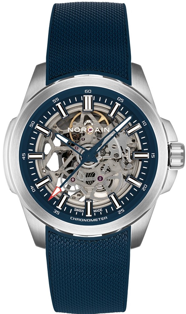 Die Independence-Kollektion umfasst Sportmodelle, die auf Innovation setzen. Gleichzeitig bringt Norqain hier sein charakteristisches modernes Design ein, das zu einem tragenden Element wird. Die für diese Kollektion charakteristischen Formen haben sowohl die Independence-Modelle mit klassischem Stahlgehäuse als auch die Wild One-Modelle, die ein geschichtetes Gehäuse aus mehreren Materialien haben. Das innere Gehäuse besteht aus Titan, das von einer Gummischicht umgeben ist, die Stöße dämpft und den Uhren gleichzeitig einen farblichen Akzent verleiht. Das äußere Gehäuse besteht aus dem Verbundmaterial Norteq.