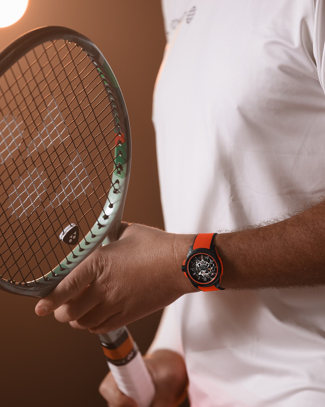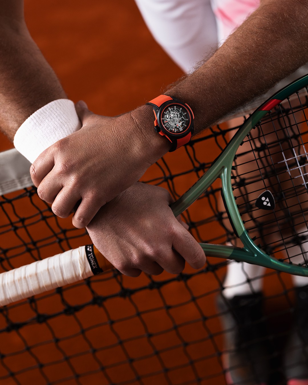 Auf den 100% Schweizer Uhren der Wild ONE Kollektion fällt neben ihrem unglaublichen Leichtgewicht vor allem ihre innovative Konstruktion auf. Das Manufakturkaliber N08S mit automatischem Aufzug, dessen Gangreserve bis zu 41 Stunden beträgt, ist in einem Titangehäuse untergebracht, das von einer Gummischicht umgeben ist, deren Funktion die Stoßdämpfung ist. Das Ganze ist in einem „Käfig“ aus dem patentierten Material NORTEQ geschützt und mit Schrauben gesichert, die speziell für dieses Konzept angefertigt wurden.