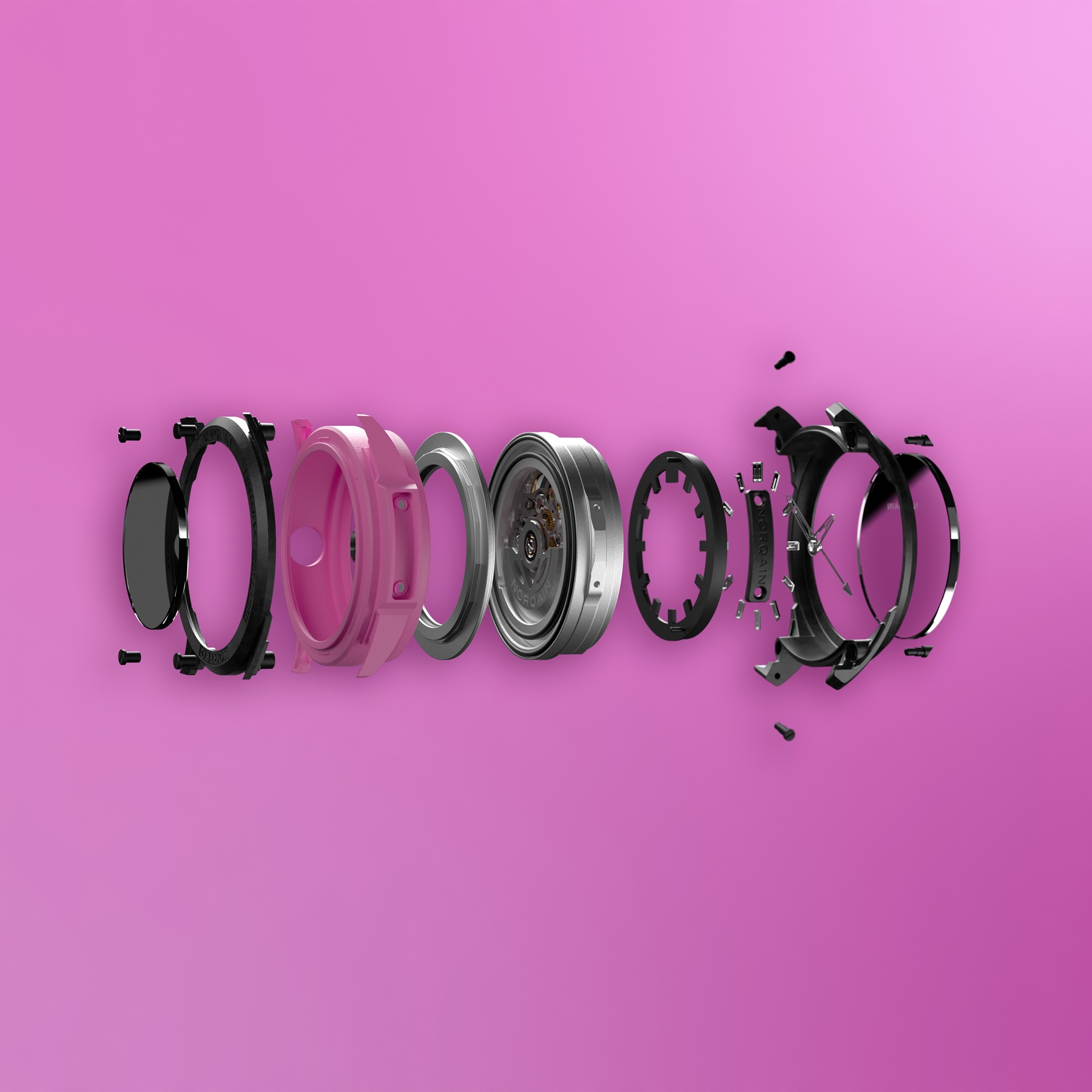 Auf den 100% Schweizer Uhren der Kollektion Wild ONE sticht neben ihrer unglaublichen Leichtigkeit vor allem ihre innovative Konstruktion hervor. Das Manufakturkaliber N08S mit automatischem Aufzug, dessen Gangreserve bis zu 41 Stunden beträgt, ist in einem Titangehäuse untergebracht, das von einer Kautschukschicht umgeben ist, deren Funktion die Stoßdämpfung ist. Das Ganze ist in einem „Käfig“ aus dem patentierten Material NORTEQ geschützt und mit Schrauben gesichert, die speziell für dieses Konzept angefertigt wurden.