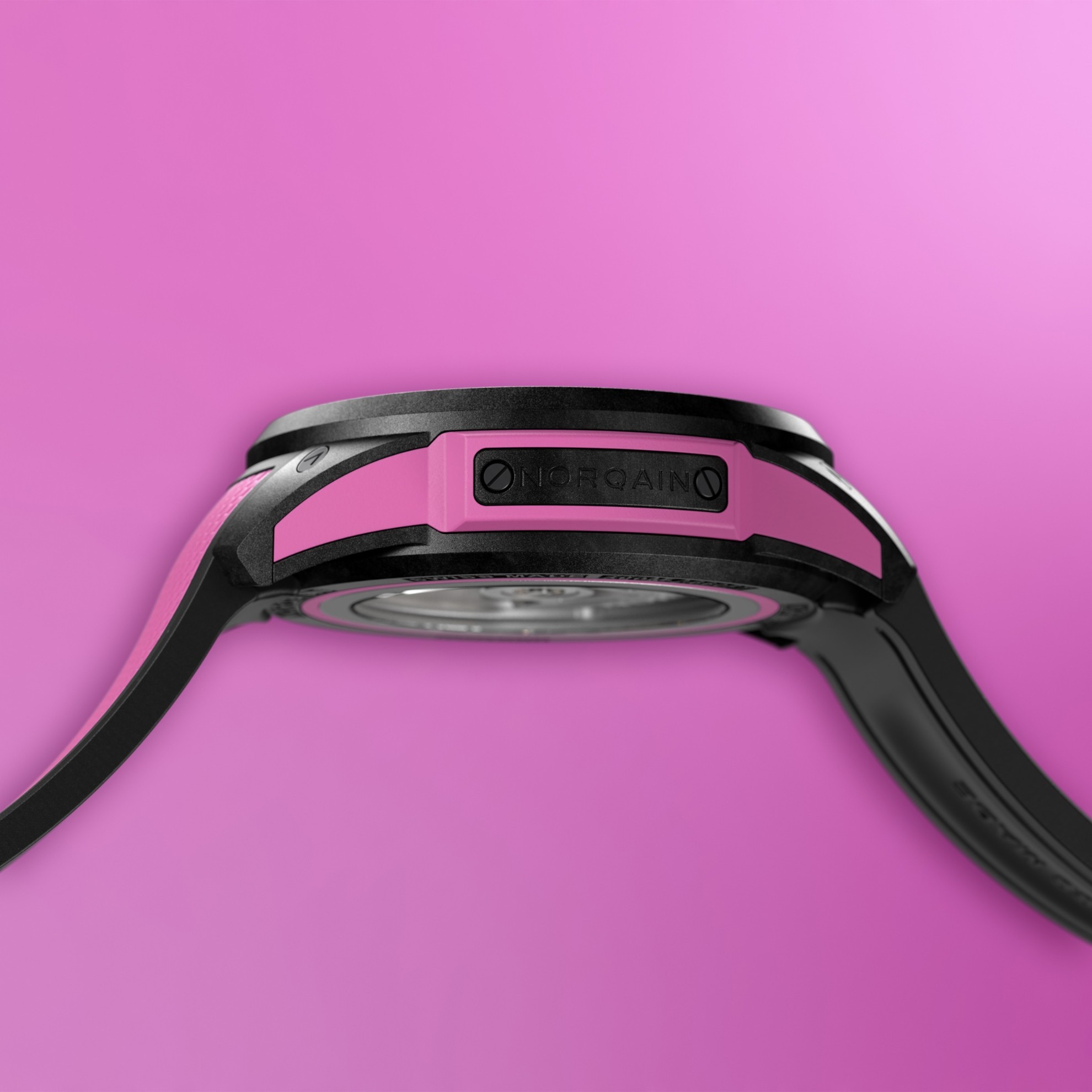 Der NORTEQ-Verbund bietet das perfekte Gleichgewicht zwischen Dichte, Elastizität und Widerstandsfähigkeit für eine optimale Stoßdämpfung. NORQAIN ist die erste Uhrenmarke, die ein farbiges Verbundgehäuse aus Kohlefasern anbietet, das neben dem Standard-Schwarzkarbon auch verschiedene Farben ermöglicht. Das Material ist zudem antimagnetisch und korrodiert im Laufe der Zeit nicht. Der Abfall, der aus dem Produktionsprozess übrig bleibt, wird zudem zu 100 % recycelt und upgecycelt – ein Beweis dafür, dass Innovationen zu einem kleineren ökologischen Fußabdruck führen können. NORQAIN ist daher Inhaber des CO-2 NEUTRAL-Zertifikats von Swiss Climate, einem Beratungsunternehmen im Bereich CO2-Management, Nachhaltigkeit, CO2-Kompensation und Energie.