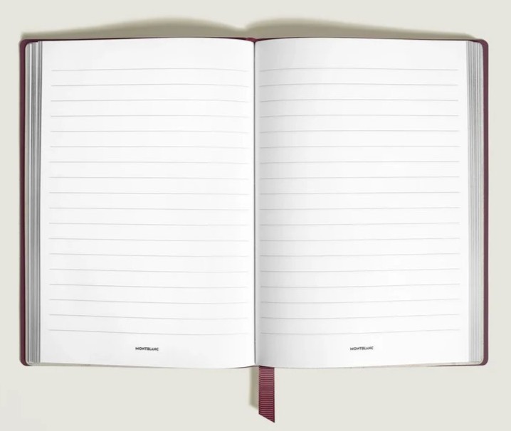 Zur Auswahl stehen Notizbücher und Notizen in verschiedenen Größen, mit linierten und blanko Blättern und mit Einbänden in verschiedenen Ausführungen. Neben Notizen mit weichem Einband sind auch Notizbücher mit festem Einband und lederbezogenen Deckeln erhältlich. Es gibt eine große Auswahl an Farben und Motiven der Einbände, einschließlich des Motivs mit dem Buchstaben M, das vor allem bei Montblanc-Lederwaren verwendet wird. Die Notizbücher verfügen auch über ein farblich abgestimmtes Textillesezeichen