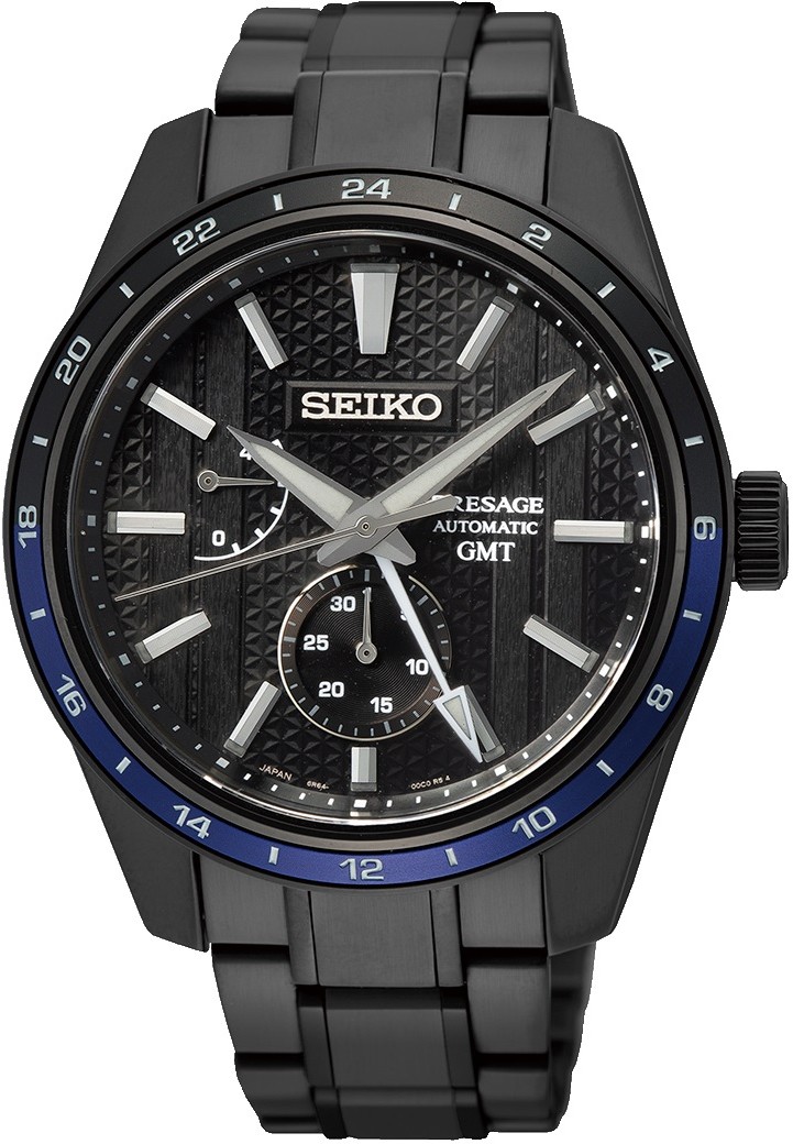 Herrenuhr Seiko Presage ZERO HALLIBURTON Limited Edition SPB271J1 mit automatischem Aufzug auf einem Metallarmband mit schwarzer PVD-Beschichtung und Faltschließe. Es handelt sich um eine limitierte Auflage, die in Zusammenarbeit mit der Marke Zero Halliburton erstellt wurde und auf 600 Stück weltweit begrenzt ist. Das Gehäuse aus Edelstahl hat einen Durchmesser von 42,2 Millimetern, einen transparenten Gehäuseboden und eine feste Lünette mit 24-Stunden-Skala und unterer Hälfte in blauer Farbe. Das schwarze strukturierte Zifferblatt mit Datumsanzeige, GMT-Komplikation und Gangreserveanzeige ist mit einer Linie verziert, die für Koffer der Marke Halliburton charakteristisch ist, in Kombination mit einem japanischen Hanfblattmuster asanoha, das in der japanischen Kultur besonders in der Heian-Periode beliebt war. Die Indizes und Zeiger sind mit einer Leuchtbeschichtung LumiBrite überzogen, die eine perfekte Lesbarkeit bei schlechten Lichtverhältnissen garantiert. Auf dem Zifferblatt, das durch Saphirglas mit Antireflexbeschichtung geschützt ist, sticht auch der GMT-Zeiger dank der kontrastierenden weißen Farbe hervor. Der Antrieb der Uhr erfolgt durch ein mechanisches Kaliber 6R64 mit automatischem Aufzug und einer Gangreserve von etwa 45 Stunden. Dieses Manufakturwerk mit Hacking-Funktion kann bei Bedarf auch manuell über die signierte Krone aufgezogen werden. Die Wasserdichtigkeit der Uhr beträgt 10 ATM und sie ist somit zum Schwimmen oder Schnorcheln geeignet. Die Uhr wird in einer spezialverpackung in Form eines Reisekoffers geliefert.