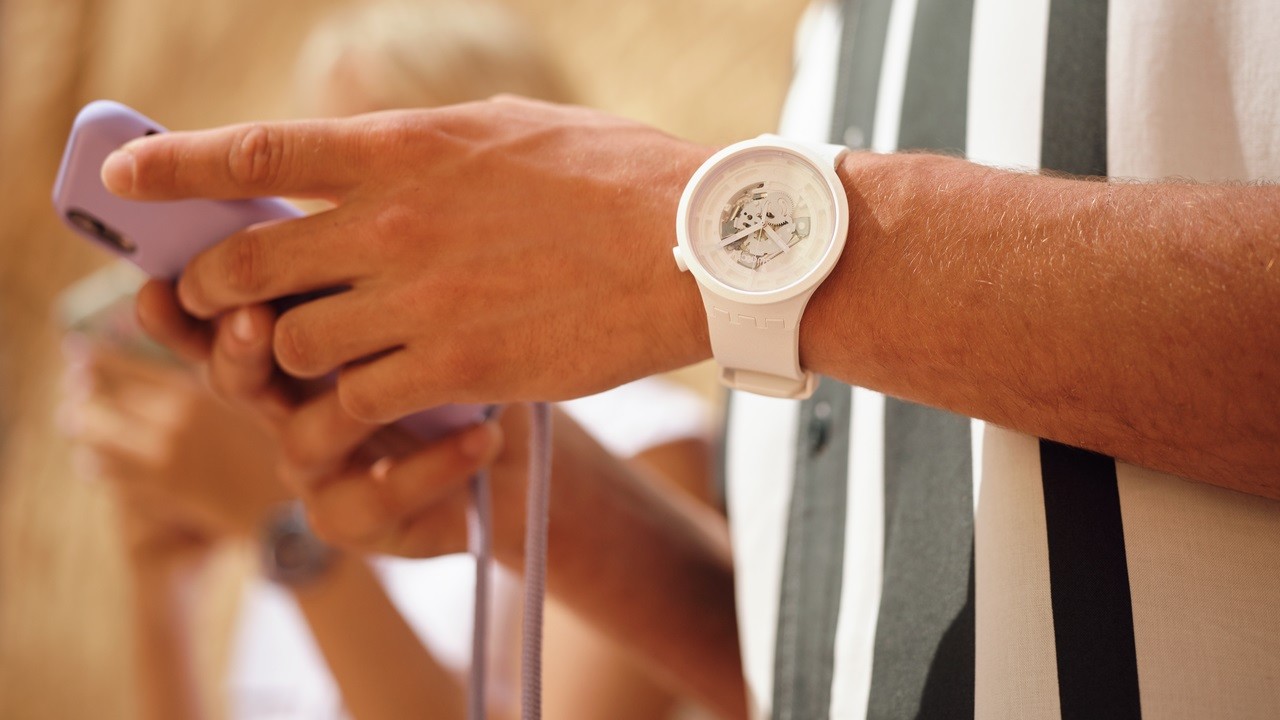 Materiál pouzdra hodinek je kombinace keramiky a plastu s biologickým původem.