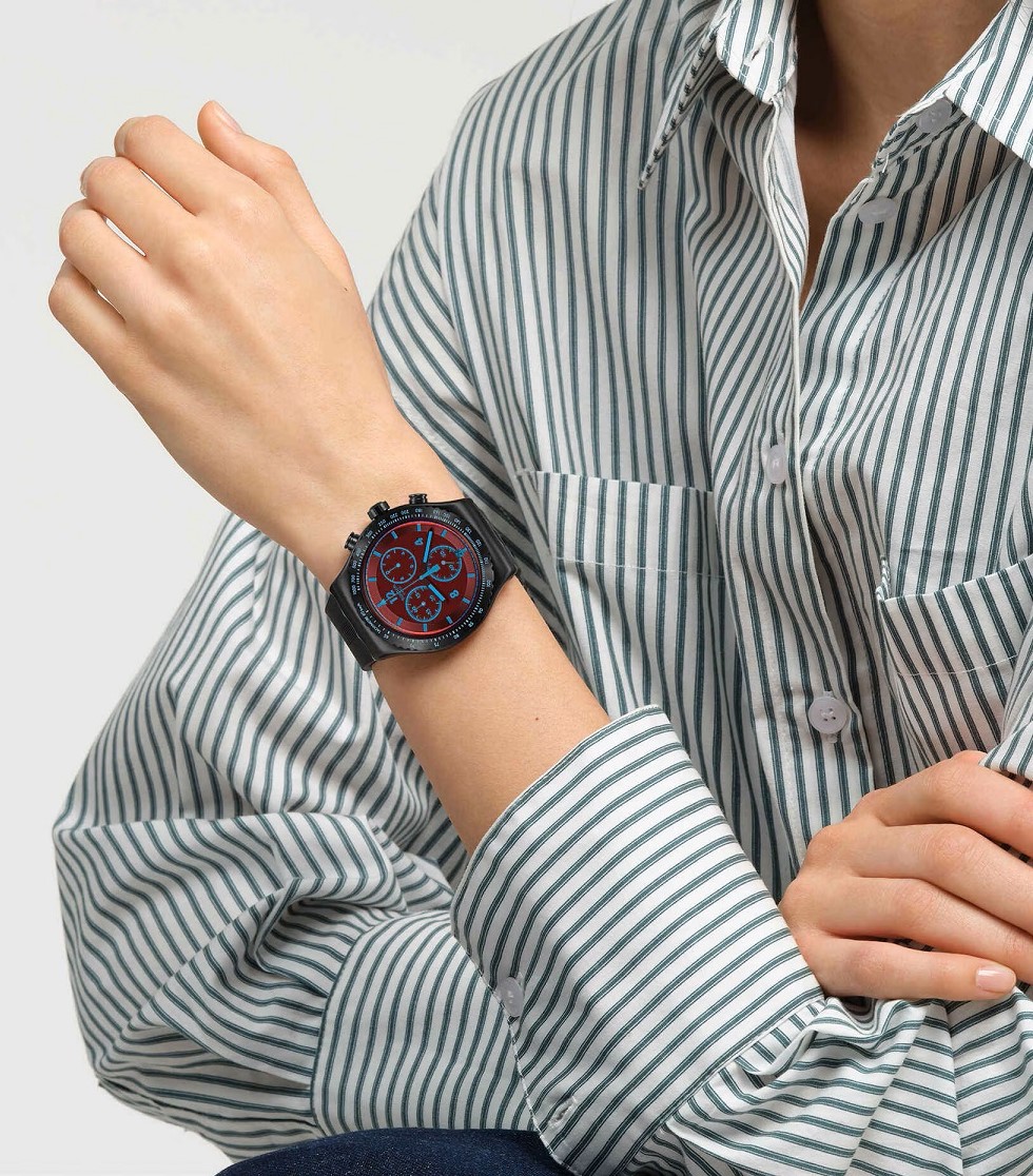 Swatch sind nicht nur Plastikuhren, die Irony-Kollektion bietet Modelle mit Edelstahlgehäuse, das mit Armbändern aus verschiedenen Materialien ergänzt wird. Dank der großen Beliebtheit hat sich die Metallausführung des Gehäuses und der Armbänder allmählich in anderen Kollektionen durchgesetzt, und heute können Sie auch Uhren in der Kollektion Big Bold oder Skin Irony in einer Vollstahlausführung finden.