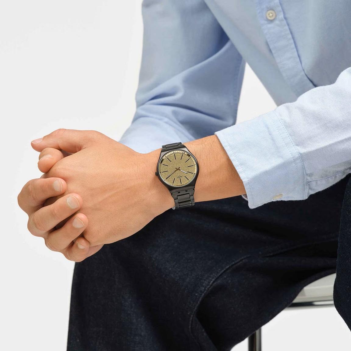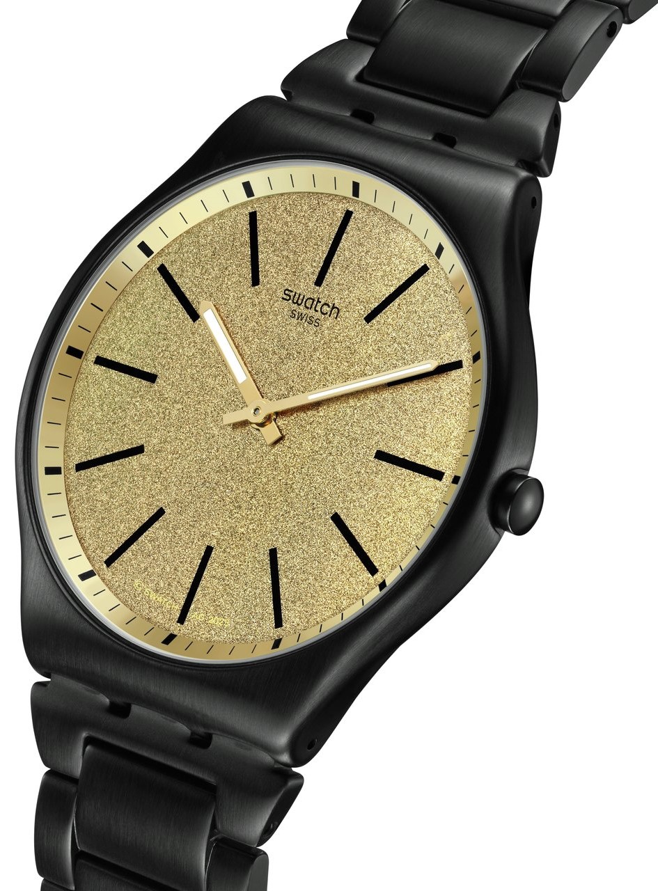 Im Jahr 2018 vereinten sich zwei sehr beliebte Swatch-Kollektionen: die ultra-dünnen und leichten SKIN-Uhren und die Irony-Modelle mit Stahlgehäusen. Es entstanden die bisher leichtesten und dünnsten Uhren mit Metallgehäuse, die sofort zum Hit wurden, da Sie die Uhren dank der Armbänder aus verschiedenen Materialien Ihrem Stil anpassen konnten. Zudem ist mit einer Gehäusedicke von maximal 6,7 Millimetern ein angenehmes Tragen garantiert.