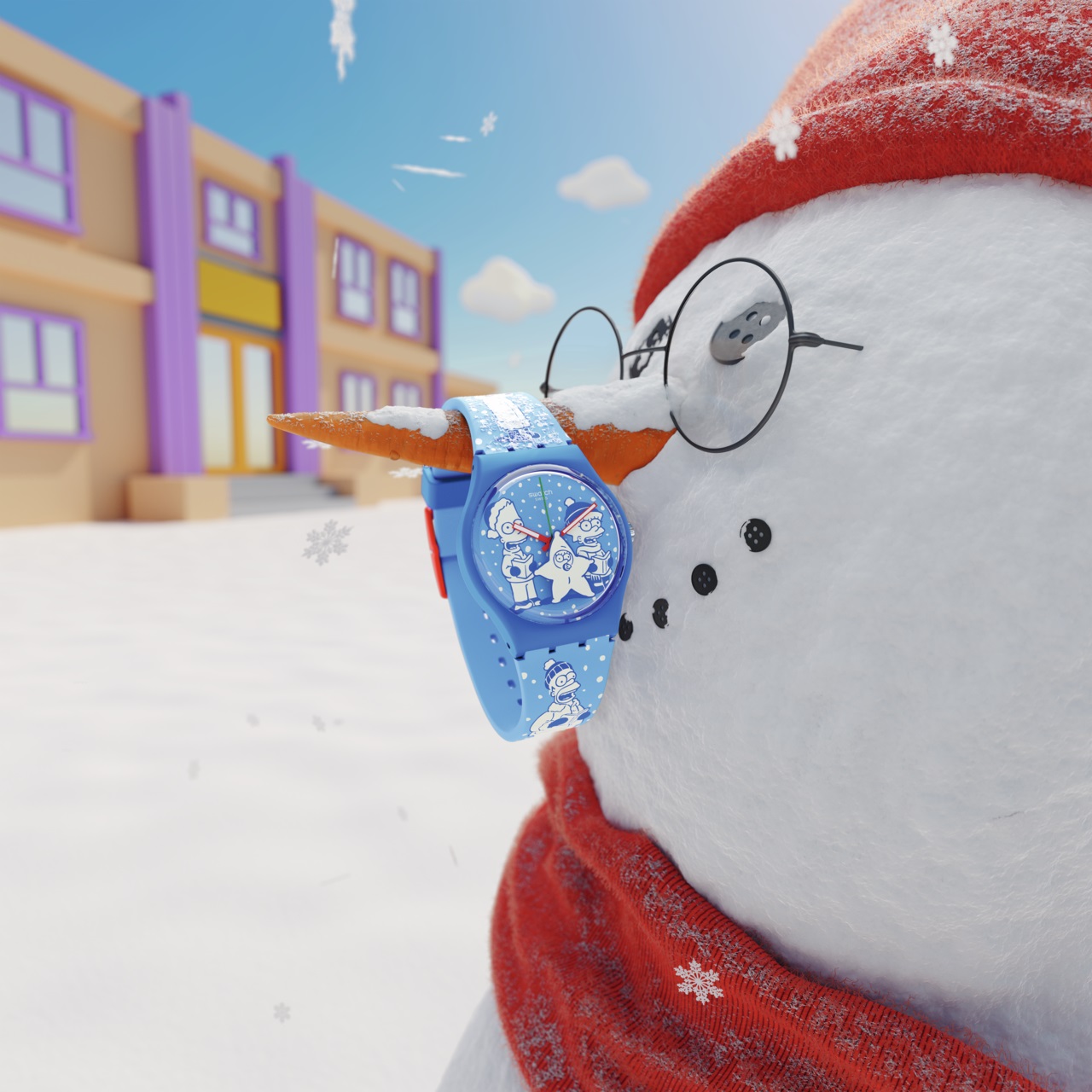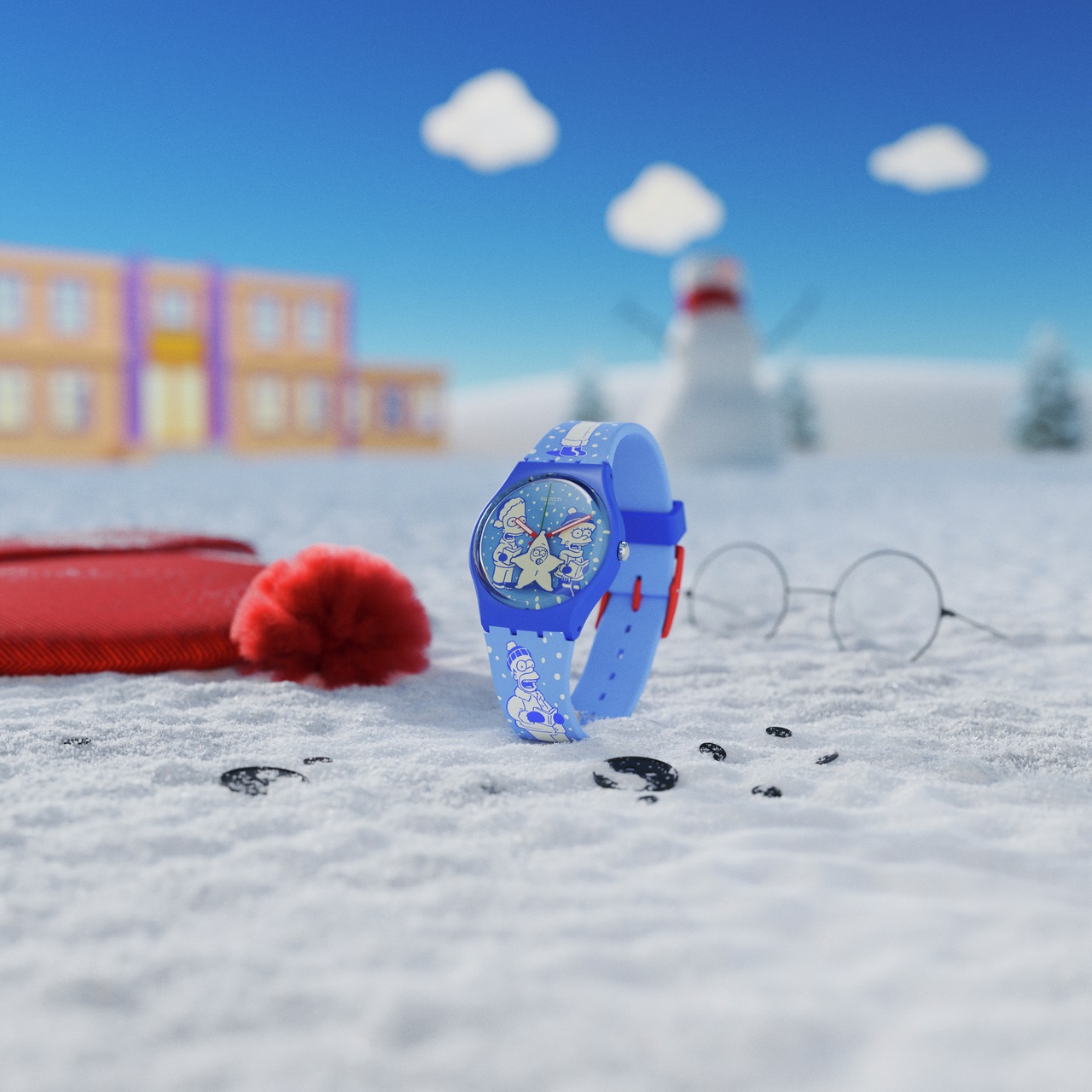 Die Firma Swatch feiert ikonische Feiertagsmomente aus der Serie Die Simpsons mit einer Neuheit, die sicherlich die Feiertagszeit verschönern und viel Freude bringen wird. Ein ideales Geschenk für Fans der Marke Swatch und der Serie Die Simpsons.