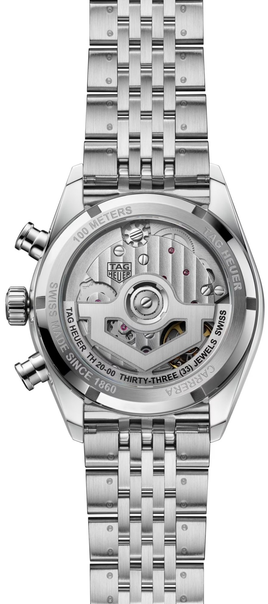 TH20-00 ist ein Schweizer mechanisches Inhouse-Uhrwerk mit automatischem Aufzug, einer Gangreserve von 80 Stunden und einem bidirektionalen Rotor. Das Uhrwerk mit Säulenrad und einer Datumsanzeige und Chronographenkomplikation bietet eine Hacking-Funktion (Anhalten des Sekundenzeigers beim Herausziehen der Krone) und Handaufzug. Dieses Uhrwerk, dessen Basis das Heuer 02 ist, arbeitet mit einer Frequenz von 28800 Halbschwingungen pro Stunde (4 Hz) und hat 33 Steine.