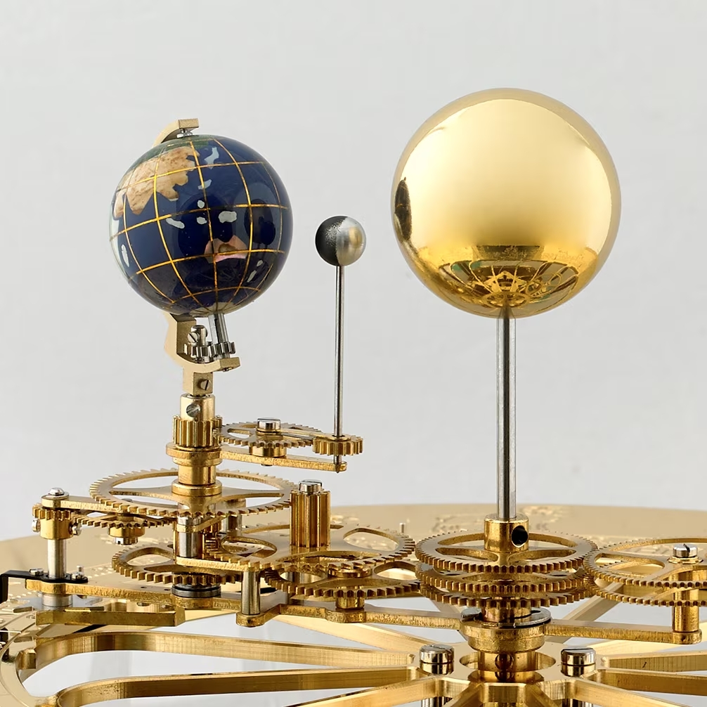 Funktionen: Schlagwerk, Westminster-Melodie, automatische Nachtabschaltung, Mondphasen, Position der Erde zur Sonne, Erdrotation, Tierkreiszeichen, Datum, Monat im Jahr
