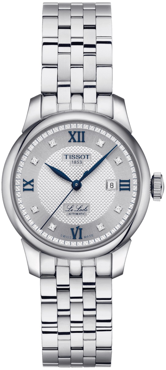 Tissot Le Locle Automatic Lady 20th Anniversary T006.207.11.036.01 sind Damen-Automatikuhr im klassischen Stil mit einem Stahlarmband und einer Faltschließe. Das Edelstahlgehäuse hat einen Durchmesser von 29 Millimetern und einen transparenten Gehäuseboden. Das silberne, strukturierte Zifferblatt mit Datumsanzeige auf der Drei-Uhr-Position und 8 Diamanten mit einem Gewicht von 0,0304 ct und Reinheit VS-SI wird durch ein widerstandsfähiges saphirglas geschützt. Der Antrieb der Uhr erfolgt durch ein mechanisches Werk Powermatic 48.111 mit automatischem Aufzug und einer Gangreserve von 48 Stunden. Mit einer Wasserdichtigkeit von 3 ATM sind die Uhren regen- und spritzwassergeschützt. Es handelt sich um ein Modell, das anlässlich des 20-jährigen Jubiläums der Le Locle-Kollektion herausgegeben wurde, im Lieferumfang ist ein zusätzliches Armband aus blauem Leder enthalten.