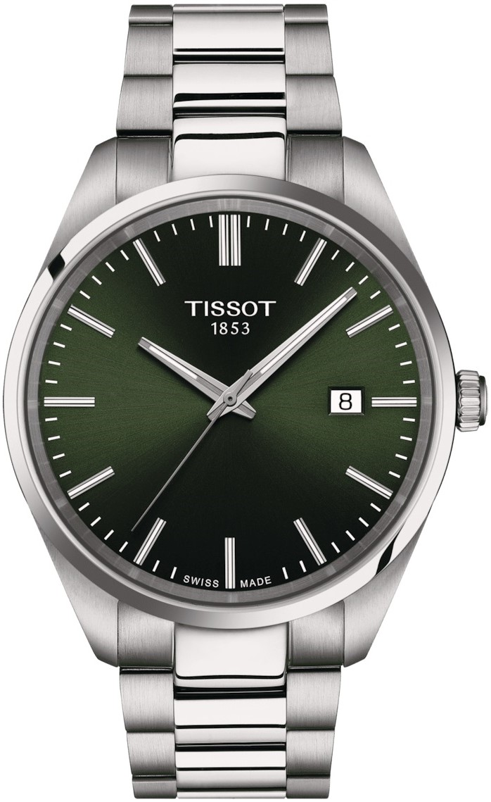 Tissot PR 100 T150.410.11.091.00 sind Herren-Quarzuhren im klassischen Stil mit einem Edelstahlarmband, das eine Kombination aus gebürstetem und poliertem Finish und einer Butterfly-Schließe aufweist. Das Gehäuse aus Edelstahl hat einen Durchmesser von 40 Millimetern. Das dunkelgrüne Zifferblatt mit Sonnenschliff und Datumsanzeige auf der Drei-Uhr-Position wird durch ein widerstandsfähiges Saphirglas geschützt. Die Zeiger und Indizes sind mit einer lumineszierenden Schicht Super-LumiNova® überzogen, die eine perfekte Ablesbarkeit bei schlechten Lichtverhältnissen garantiert. Der Antrieb der Uhr erfolgt durch ein Quarzwerk ETA F06.115 mit Batteriestandsanzeige. Mit einer Wasserdichtigkeit von 10 ATM sind die Uhren zum Schwimmen oder Schnorcheln geeignet.