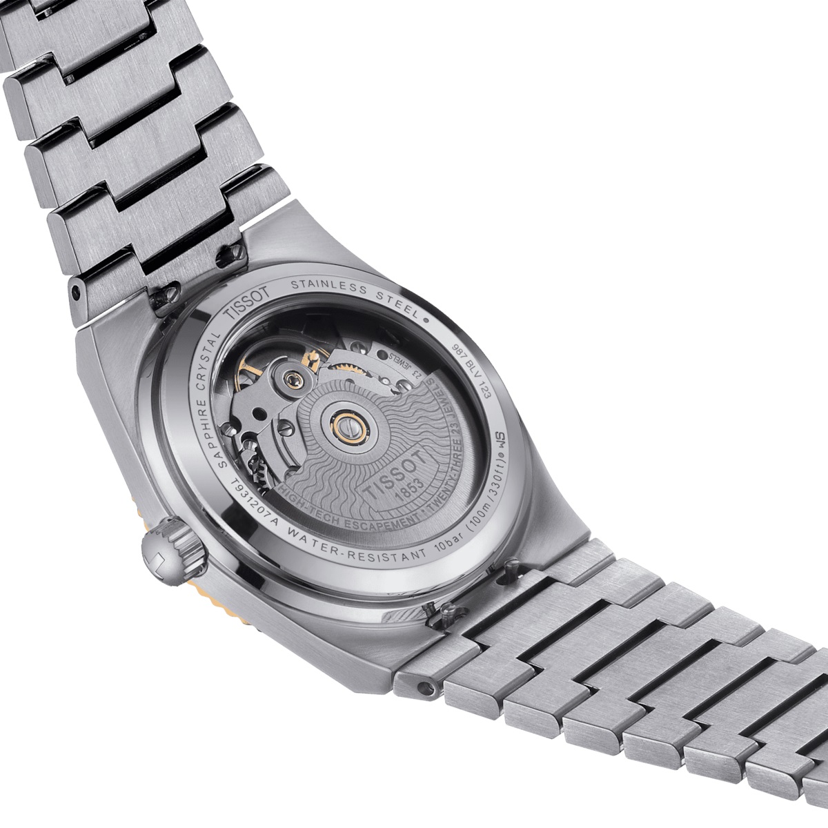 Tissot PRX Powermatic 80 T931.207.41.031.01 sind Damenautomatikuhren mit einem integrierten Stahlarmband mit gebürsteter Oberfläche und Schmetterlingsschließe. Das Edelstahlgehäuse hat einen Durchmesser von 35 Millimetern, einen transparenten Boden und eine Lünette aus 18k Gold. Das silberne Zifferblatt mit Sonnenschliff-Effekt und Datumsanzeige wird von einem widerstandsfähigen Saphirglas mit Antireflexbeschichtung geschützt. Die applizierten Stundenindizes sind ebenso wie die Zeiger mit Super-LumiNova® beschichtet, was eine perfekte Ablesbarkeit bei schlechten Lichtverhältnissen garantiert. Der Antrieb der Uhr erfolgt durch ein mechanisches Werk Powermatic 80 mit automatischem Aufzug und einer Gangreserve von etwa 80 Stunden. Dank der Verwendung einer antimagnetischen Unruhspirale Nivachron™ aus einer Titanlegierung, die in Zusammenarbeit mit der Swatch Group und der Manufaktur Audemars Piguet entwickelt wurde, ist dieses Kaliber hochgradig resistent gegen magnetische Einflüsse. Dieses Werk mit Hacking-Funktion kann bei Bedarf auch manuell über die signierte Krone aufgezogen werden. Die Wasserdichtigkeit der Uhr beträgt 10 ATM, was sie für Schwimmen oder Schnorcheln geeignet macht.