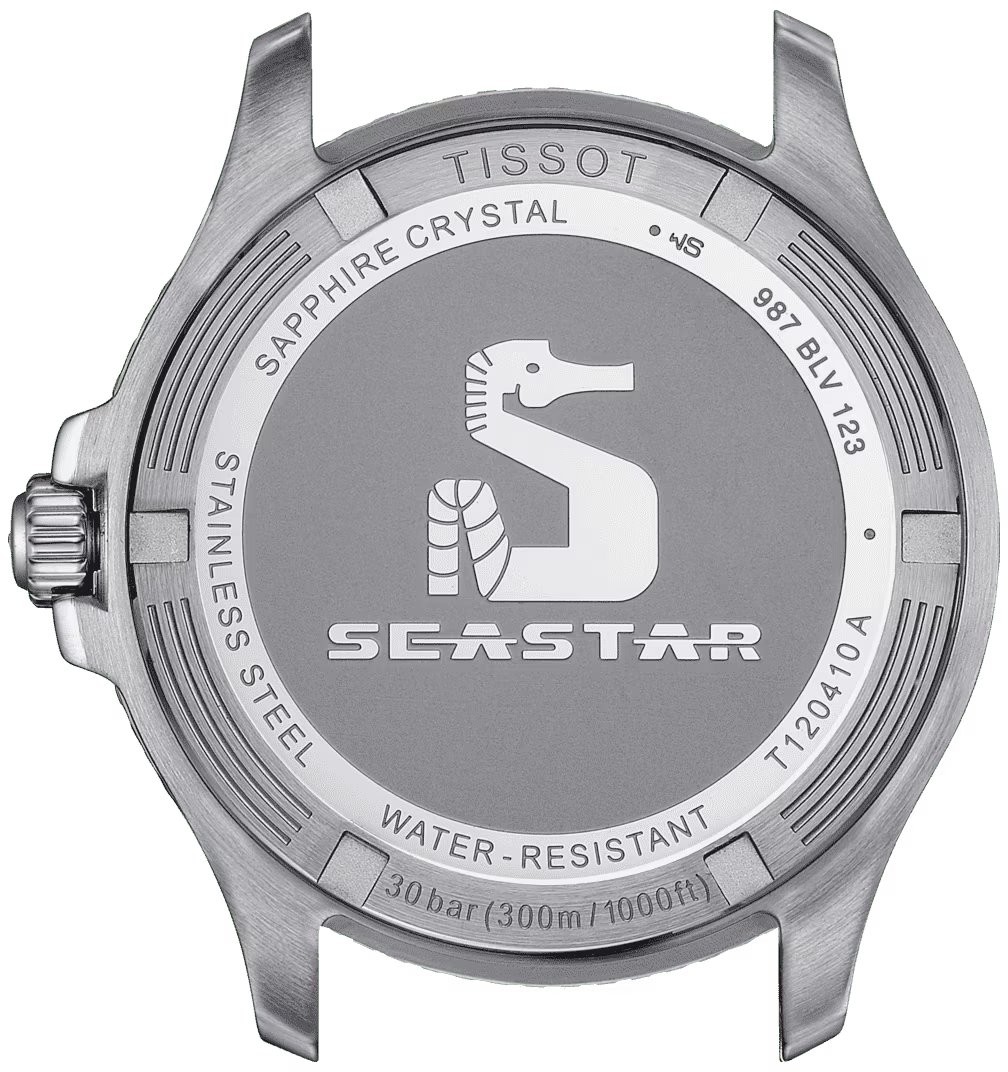 Tissot Seastar 1000 Quartz T120.410.11.041.00 sind Herren-Quarzuhren im klassischen Stil mit einem Edelstahlarmband mit Faltschließe. Das Edelstahlgehäuse hat einen Durchmesser von 40 Millimetern und eine verschraubte Krone. Das übersichtliche blaue Zifferblatt mit Datumsanzeige auf der Sechs-Uhr-Position wird durch ein widerstandsfähiges Saphirglas mit Antireflexbeschichtung geschützt. Die applizierten Stundenindizes sind ebenso wie die Zeiger mit einem Leuchtanstrich Super-LumiNova® versehen, der eine perfekte Ablesbarkeit bei schlechten Lichtverhältnissen garantiert. Der Antrieb der Uhr erfolgt durch ein Quarzwerk F06.412 mit Anzeige für schwache Batterie EOL (End of Life). Mit einer Wasserdichtigkeit von 30 ATM ist die Uhr für das Gerätetauchen geeignet.