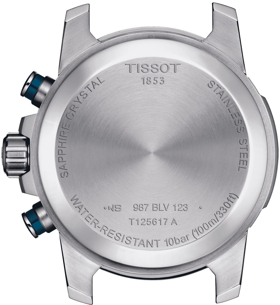 Tissot Supersport Chrono T125.617.11.041.00 sind sportliche Herrenuhren mit einem Stahlarmband mit Klappschließe. Das Edelstahlgehäuse hat einen Durchmesser von 45,5 Millimetern und eine feste blaue Aluminiumlünette mit Tachymeterskala. Das blaue Zifferblatt mit Sonnenschliff und silbernen Hilfszifferblättern ist durch ein widerstandsfähiges Saphirglas geschützt. Die Zeiger und aufgebrachten Indizes sind mit einem leuchtenden Anstrich Super-LumiNova® versehen, der perfekte Lesbarkeit bei schlechten Lichtverhältnissen garantiert. Der Antrieb der Uhr wird durch ein Quarzwerk ETA G10.212 mit einer maximalen täglichen Gangabweichung von +/- 0,1 Sekunden gewährleistet. Die Uhr verfügt über eine Stoppuhr, Datumsanzeige und Batteriestandsanzeige. Mit einer Wasserdichtigkeit von 10 ATM ist sie zum Schwimmen oder Schnorcheln geeignet.