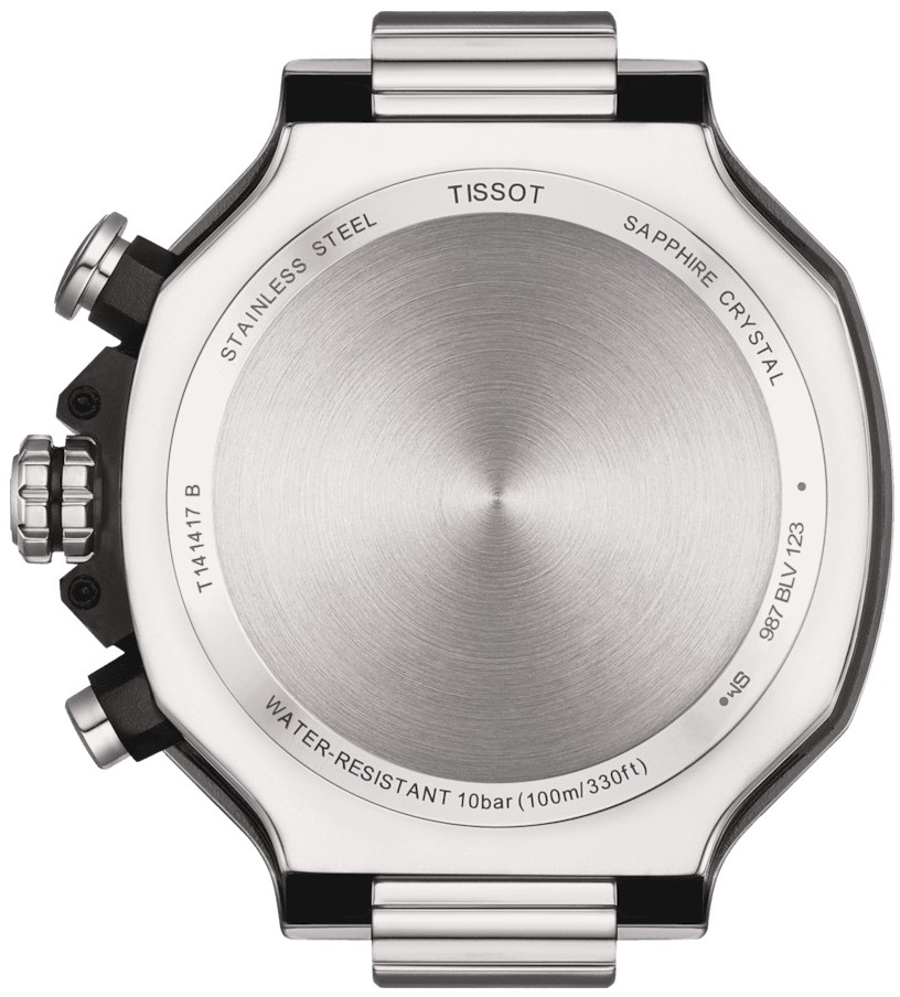 Tissot T-Race Chronograph T141.417.11.031.00 sind Herren-Quarz-Sportuhren mit einem Stahlarmband und einer Faltschließe. Das Gehäuse aus Edelstahl hat einen Durchmesser von 45 Millimetern und eine innere Lünette mit Tachymeterskala. Das silberne strukturierte Zifferblatt mit Datumsanzeige und Chronograph ist durch ein widerstandsfähiges saphirglas mit Antireflexbeschichtung geschützt. Die applizierten Stundenindizes sind ebenso wie die Zeiger mit einer lumineszierenden Beschichtung Super-LumiNova® versehen, die eine perfekte Ablesbarkeit bei schlechten Lichtverhältnissen garantiert. Das Uhrwerk wird von einem Quarzwerk ETA G10.212 mit einer Genauigkeit von +/- 10 Sekunden pro Jahr und einer Anzeige für schwache Batterie angetrieben. Die Wasserdichtigkeit der Uhr beträgt 10 ATM und ist somit zum Schwimmen oder Schnorcheln geeignet.