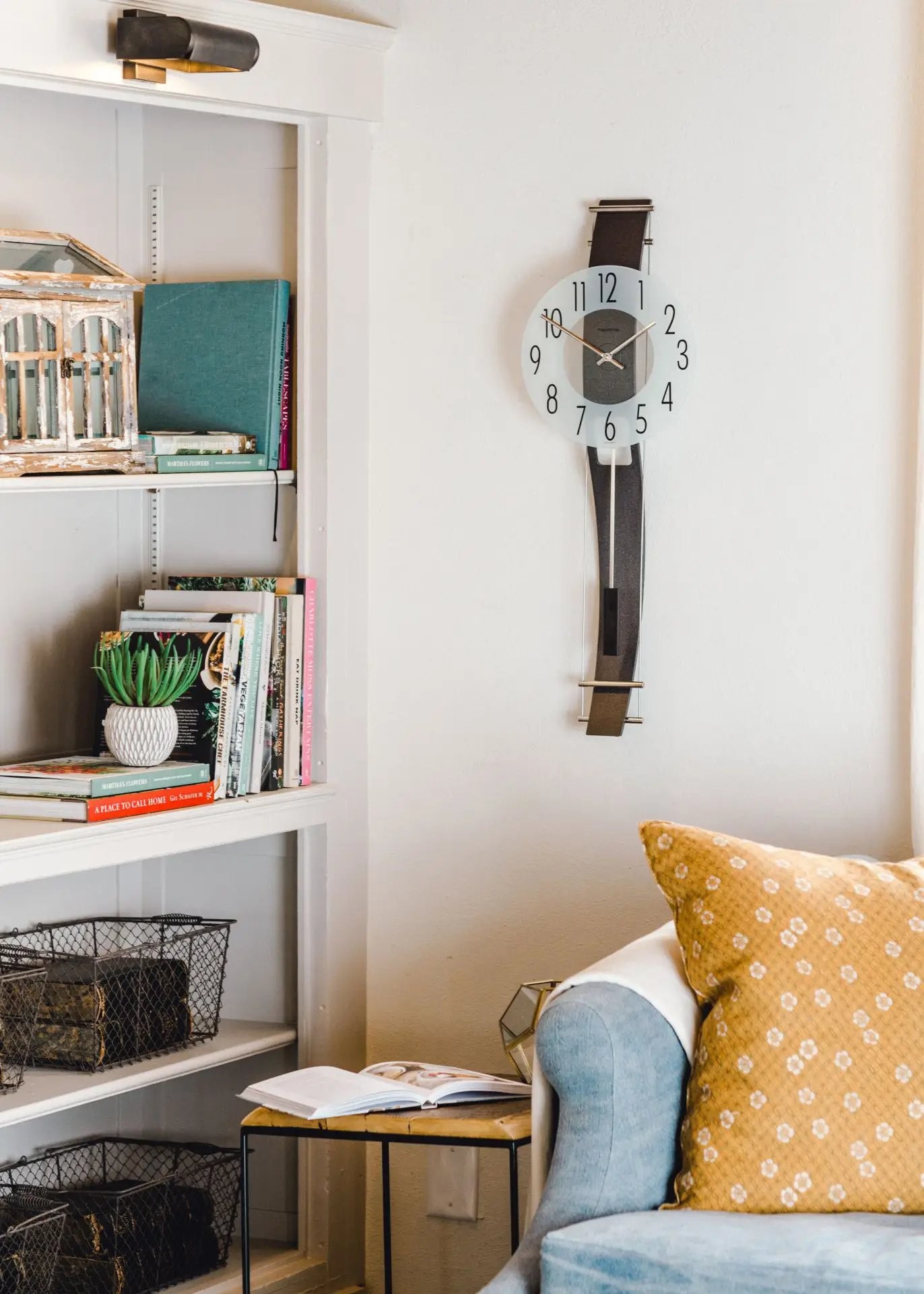 Moderne Wanduhr mit Quarzpendel in anthrazit mit mattem Zifferblatt aus Glas und schwarzen arabischen Ziffern.