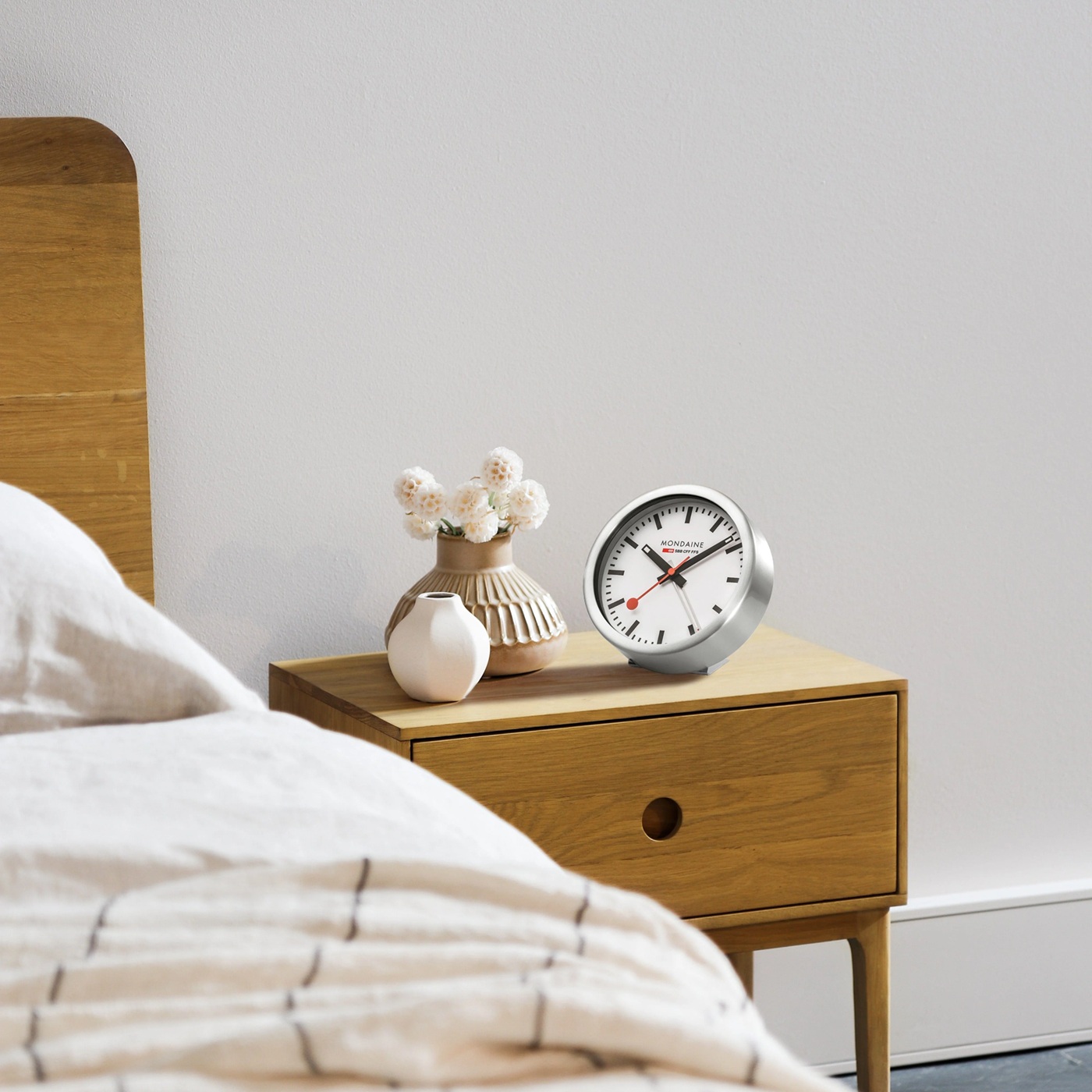 Um die absolute Genauigkeit der Bahnhofuhren zu gewährleisten, werden sie alle 60 Sekunden synchronisiert. Dies funktioniert so, dass der rote Zeiger 58 Sekunden läuft, dann für eine Sekunde bei der 12 anhält und auf einen elektrischen Impuls wartet, der die nächste Minute signalisiert, um sich wieder zu bewegen. Diese zweisekündige Pause dient dazu, alle Uhren zu synchronisieren und die genaue Zeit auf allen Bahnhofuhren sicherzustellen. Diese innovative Technologie bietet Mondaine unter dem treffenden Namen stop2go an.